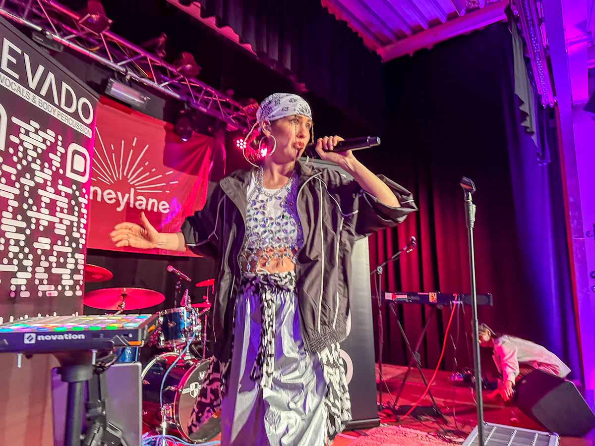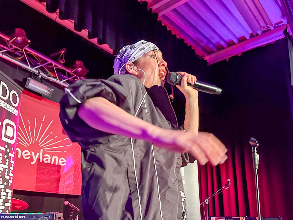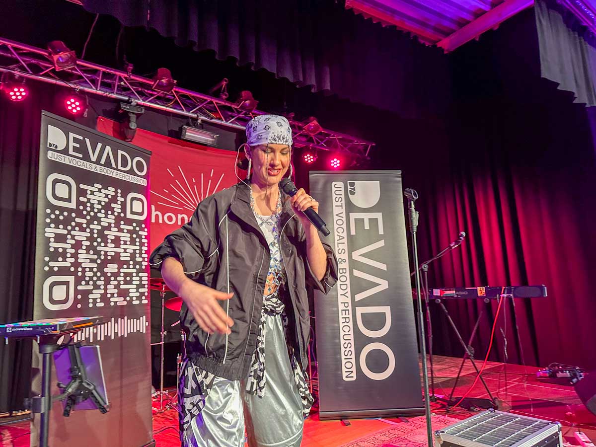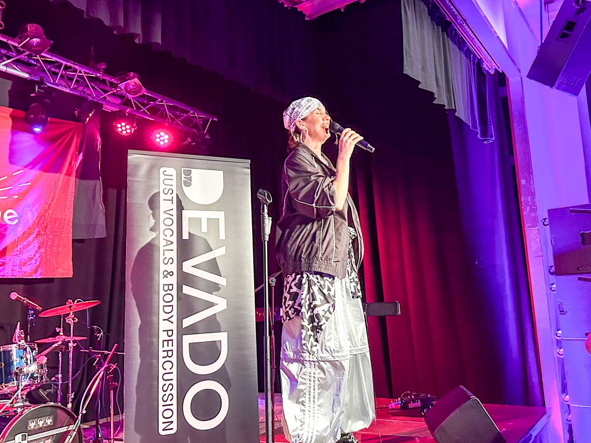 Vocal & Body Sounds Artistin Devado auf der Bühne im Lokschuppen