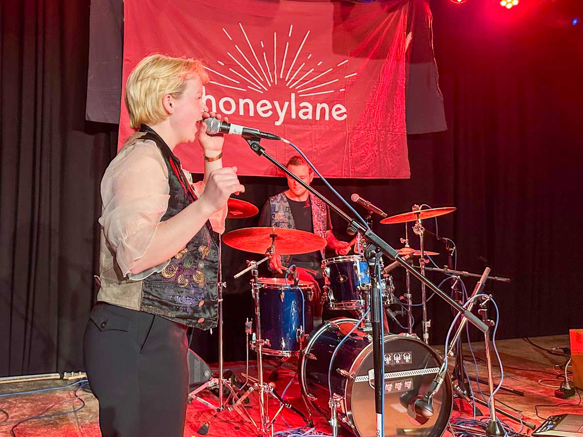 Jodler, Schlagzeug, Indie-Pop von Honeylane auf der Bühne im Lokschuppen