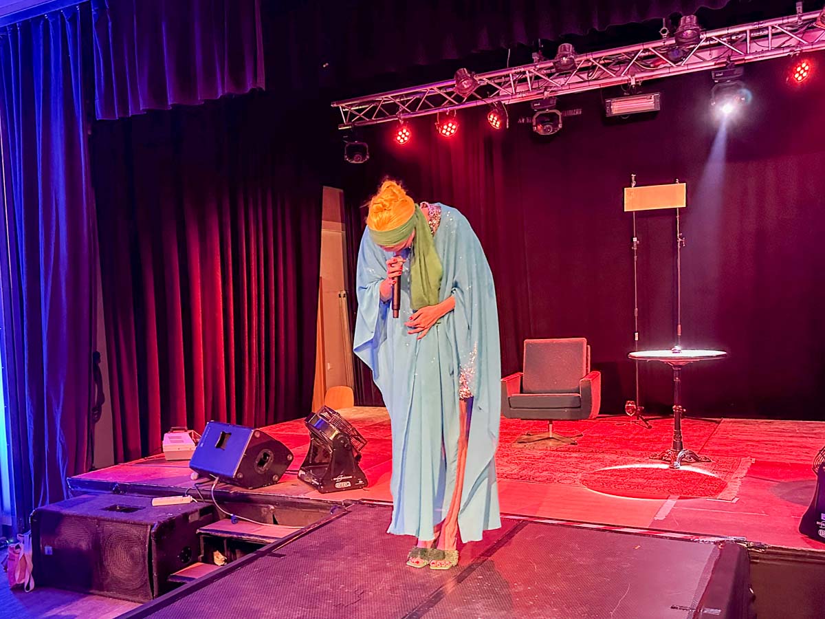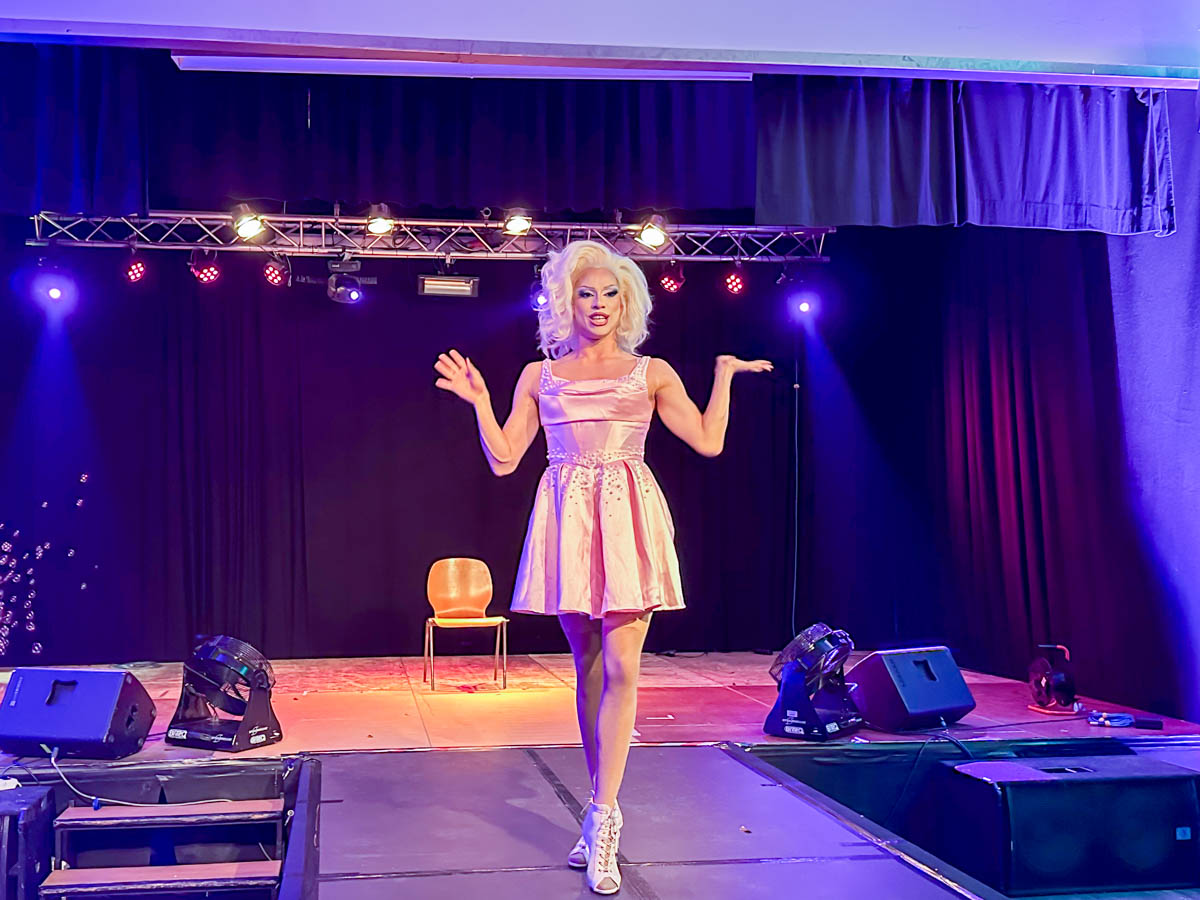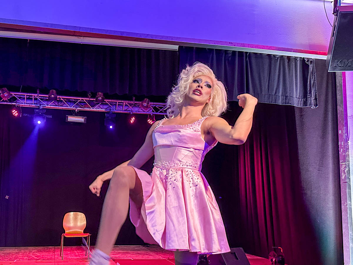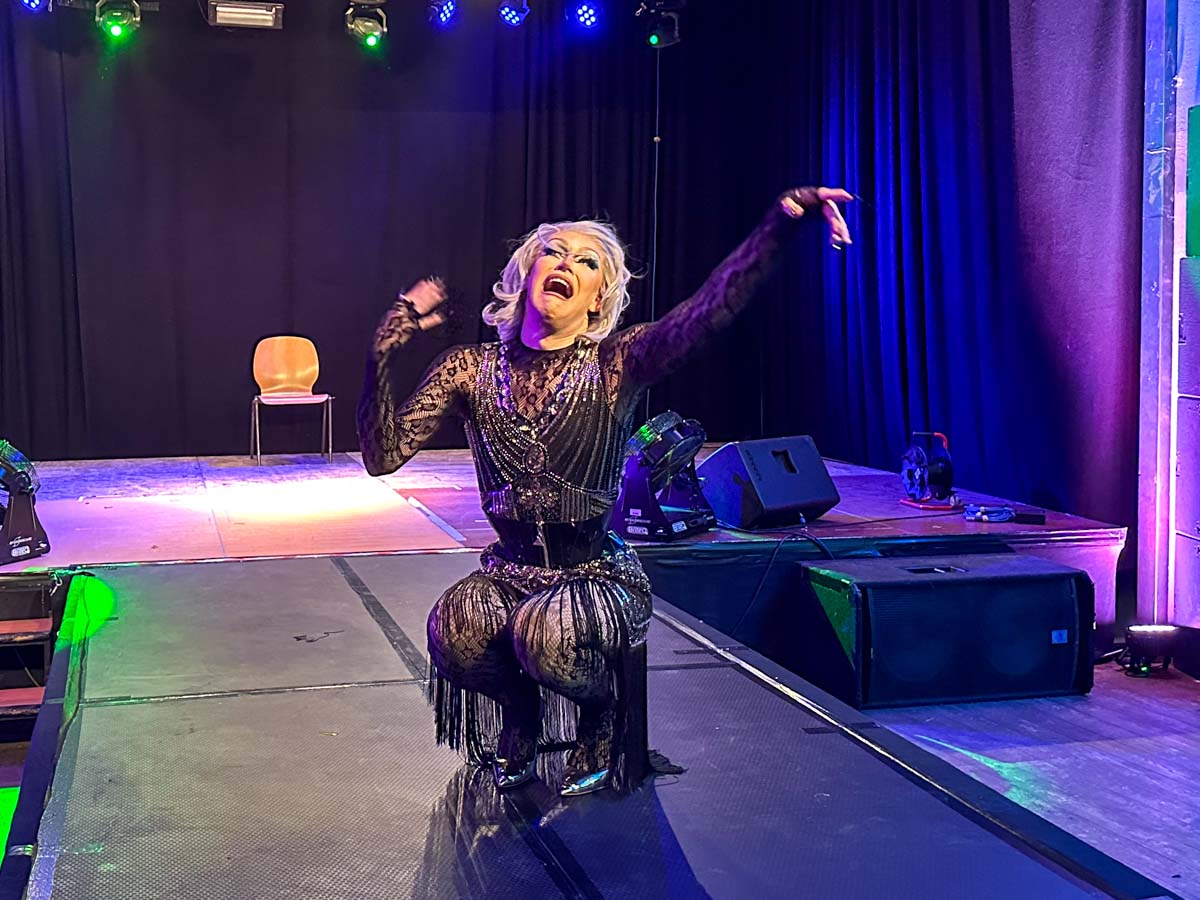 »Loveletter to Femininity« Dragshow mit Lydia Kayn (Foto), Marie Conna und Pinay Colada auf der Bühne im Lokschuppen