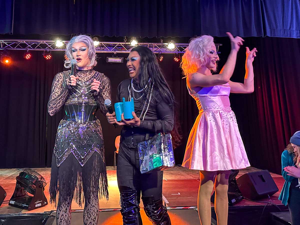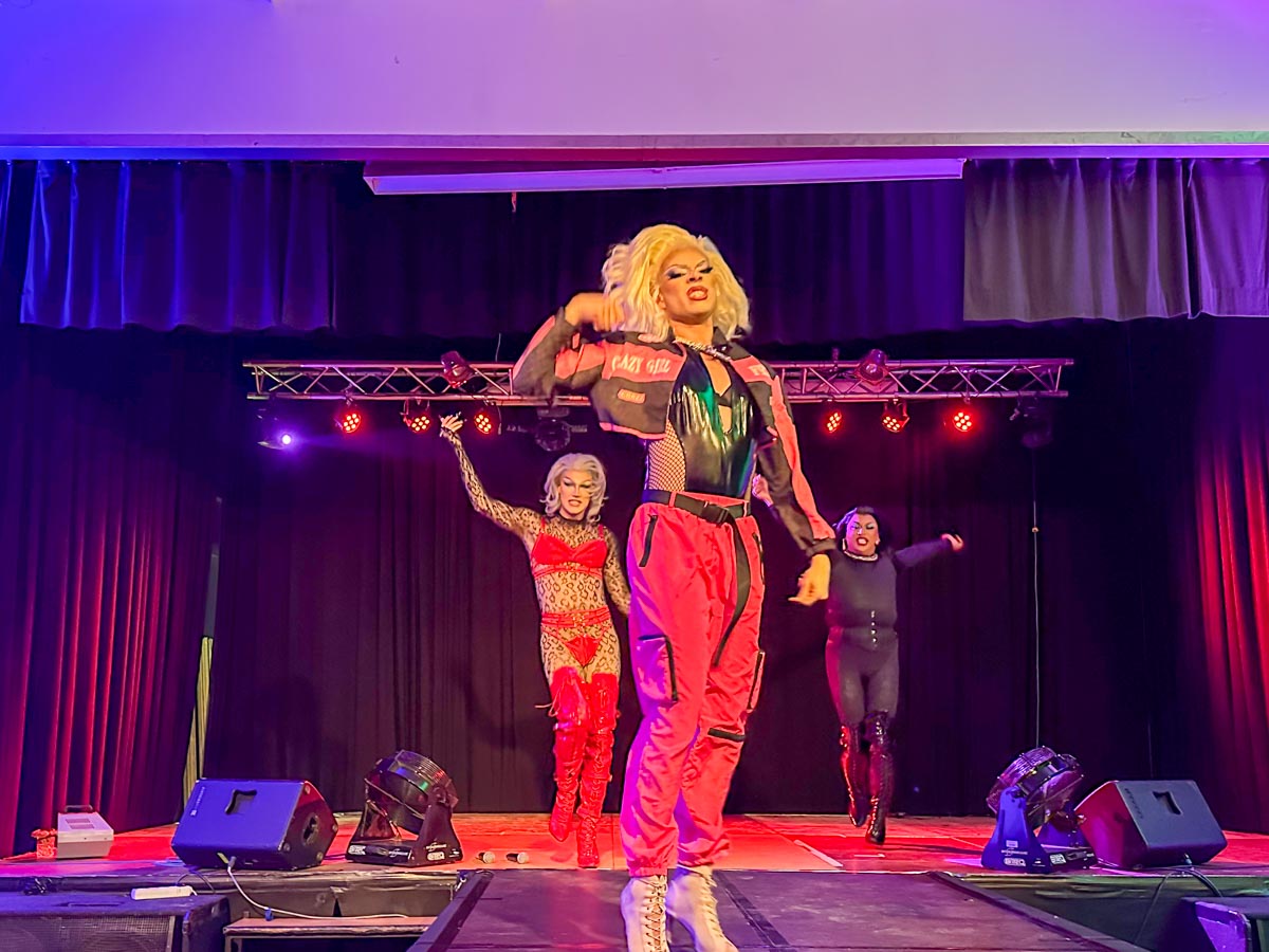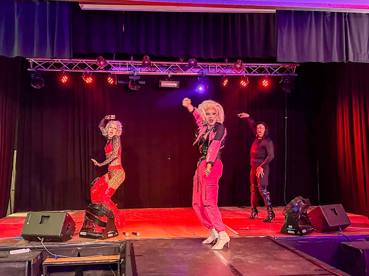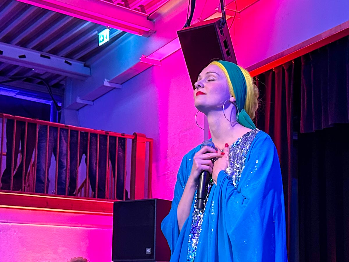 »Loveletter to Femininity« Dragshow mit Lydia Kayn (Foto), Marie Conna und Pinay Colada auf der Bühne im Lokschuppen