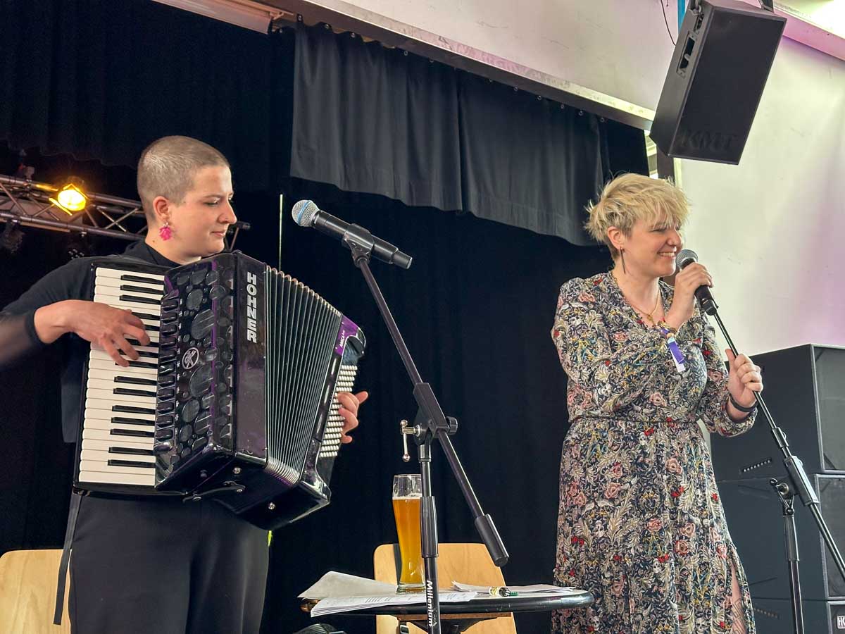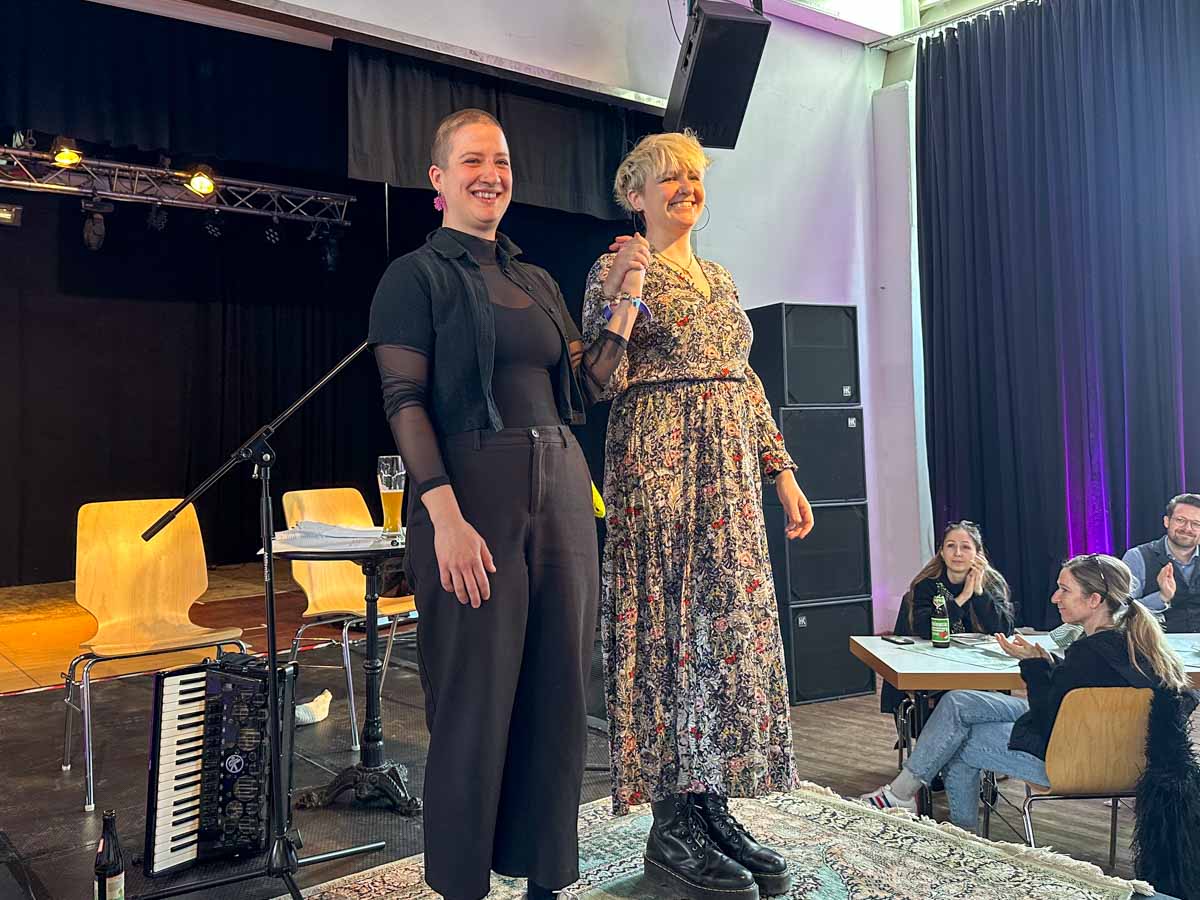 Musikalische Lesung mit Achtung Brigitte (Ricarda Krüger & Anna Grude) auf der Bühne im Lokschuppen