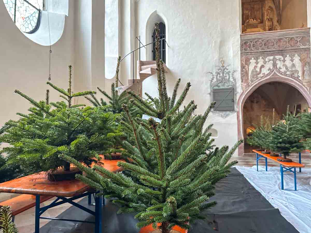 In der Heilig-Geist-Kirche warten die Christbäumchen (die der Wirtschaftliche Verband stiftet) von Ihnen geschmückt zu werden.